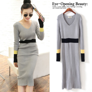 (到貨)免費服裝代理 女裝一件代發(fā) 兩色拼貼時尚針織連衣裙 /