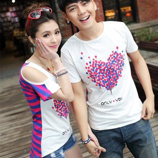 情侶裝 夏季新款情侶夏季顯瘦短袖T恤韓版情侶裝情侶t恤一件代發(fā) /