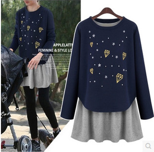 歐洲站2014秋冬新款歐美大碼女裝圓領(lǐng)長袖時尚兩件套 連衣裙裙子 /