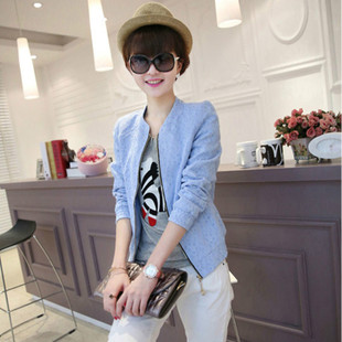 2014秋裝新款女裝 韓版蕾絲繡花立領(lǐng)拉鏈長袖小外套女款夾克 /