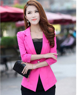 韓版女裝2014新款 小西服女 糖果色七分袖 小外套西裝 /