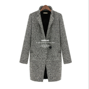 2014實拍毛呢外套女 冬裝新款加絨加棉厚羊毛大衣 千鳥格西裝呢 /