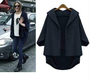 歐洲站2014胖mm寬松歐美風蝙蝠袖呢子七分袖毛呢外套 /