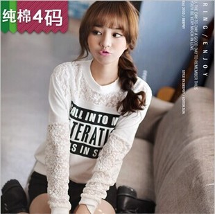 2014秋裝新款韓版女裝 韓國休閑圓領(lǐng)印花蕾絲拼接女式衛(wèi)衣5227 /