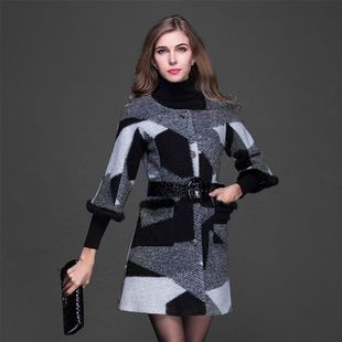歐洲站時尚中長款毛呢大衣女裝一件代發(fā)歐美明星同款冬季外套 /