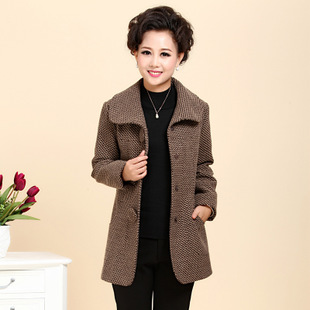 批發(fā) 中老年女裝秋冬外套 中長(zhǎng)款翻領(lǐng)三粒扣毛呢外套女式呢子上衣 /