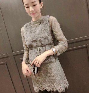 歐洲站女裝東大門秋冬蕾絲打底韓版兔毛 連衣裙一件代發(fā)紅人馬甲 /