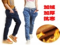 廠家直銷冬季加絨加厚韓版修身顯瘦高腰女式牛仔小腳褲鉛筆長褲 /