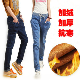 直銷冬季韓版休閑寬松大碼加絨加厚哈倫女式提臀牛仔小腳鉛筆褲 /