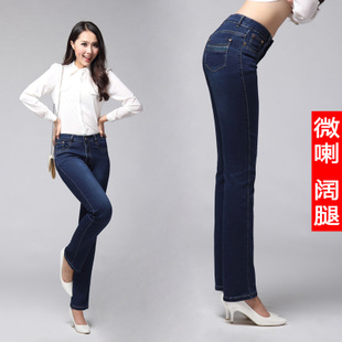 廠家直銷女式牛仔褲 高腰大碼微喇叭闊腿中年女長褲 2014秋季新款 /
