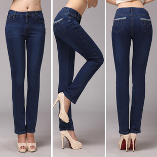 2014秋季新款 批發(fā)中高腰女褲子彈力大碼女裝長褲直筒牛仔褲 /