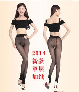 批發(fā)2014秋冬新款假透肉無縫單層一體打底褲透肉色加絨拉絨女褲 /