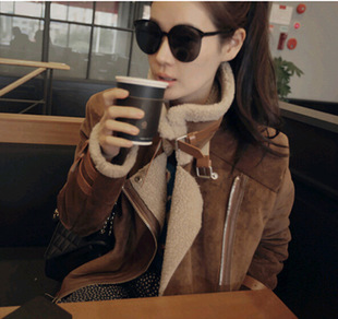 東大門秋冬裝韓版新款女裝修身加厚麂皮絨羊羔毛機(jī)車外套棉衣大衣 /