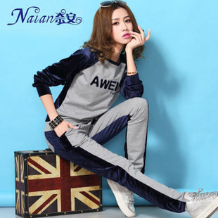 代理加盟好質(zhì)量春裝新款韓國絨女套頭圓領(lǐng)衛(wèi)衣休閑運(yùn)動套裝 /