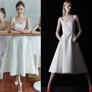 倪妮同款白色高端品質(zhì)V領(lǐng)長款背心連衣裙 女裝批發(fā)微信一件代發(fā) /