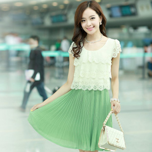 簡介:建議零售價 198.00 貨號 2583-1322 產(chǎn)地 杭州 貨源類別 現(xiàn)貨 風(fēng)格 韓版 圖案 純色 款式 基本款 組合形式 單件 裙長 中長裙 裙型 百褶裙 領(lǐng)型 圓領(lǐng) 袖型 常規(guī)袖 袖長 短袖 腰型 中腰 衣門襟 套頭 面料 雪紡 成分 棉 成分含量 31%-50% 流行元素 拼接 工藝 拼貼/拼接 上市年份/季節(jié) 2014夏季 主圖來源 實拍有模特 顏色 皮粉,果綠 尺碼 M,L,XL,XXL 面料成分 蕾絲+雪紡