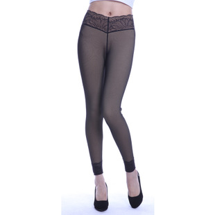 冬 韓版女假透肉加絨加厚打底網(wǎng)紗保暖褲修身 顯瘦大碼靴襪子褲 /
