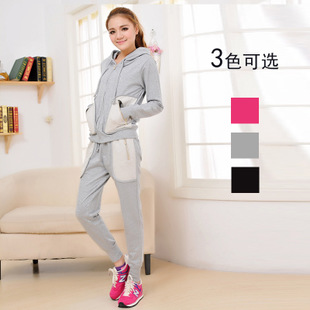 2014春秋夕新款純色連帽套裝 薄款百搭套裝批發(fā) /