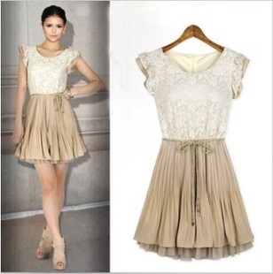 外貿(mào)女裝2014夏季新款連衣裙 歐美范蕾絲雪紡拼接大碼連衣裙8139 /