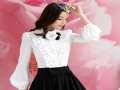 2014秋裝新款白色小立領(lǐng)荷葉邊燈籠袖長袖襯衫(送胸花) /