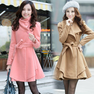 阿里巴巴平臺2014女裝秋冬新款韓版長袖毛呢大衣外套 /
