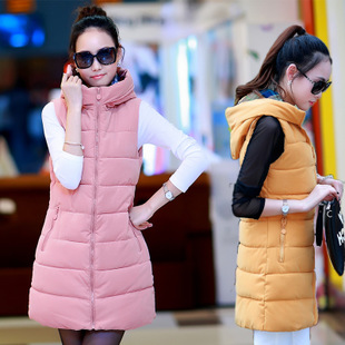 2014秋冬新款大碼女裝保暖棉馬甲 韓版時尚中長款連帽加厚外套 /