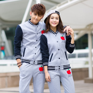 2014情侶套裝秋冬小蘋果棒球服開衫套裝運動休閑抓絨加厚班服潮 /