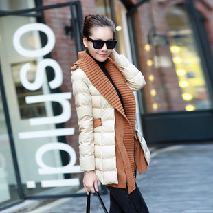 2014冬裝新款氣質(zhì)韓版優(yōu)雅修身PU皮拼接毛線領女棉衣 拉迪蔓戈059 /