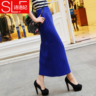 2014秋冬新款 韓版女裝一步裙 百褶 毛線長裙 包臀 半身裙 羊毛裙 /