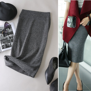 秋冬新款包臀修身毛線螺紋針織半身中裙一步高腰裙彈力打底裙子 /