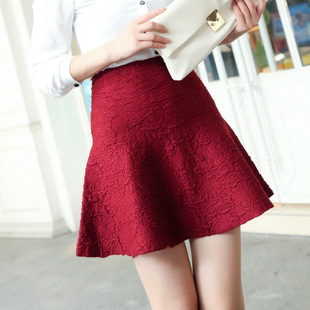 2014韓國爆版 超值多色立體浮雕百搭顯瘦針織傘裙女高腰短裙半裙 /