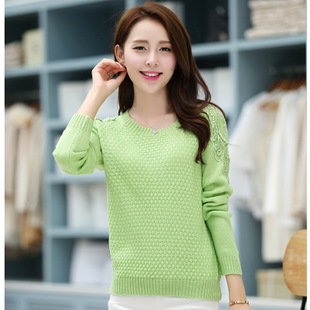 2014秋裝新款女裝上衣 蕾絲套頭圓領(lǐng)針織衫女毛衣 修身針織打底衫 /