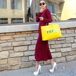 2014秋裝新款歐美女裝外貿(mào)純棉連衣長裙長袖秋季連衣裙長裙批發(fā) /