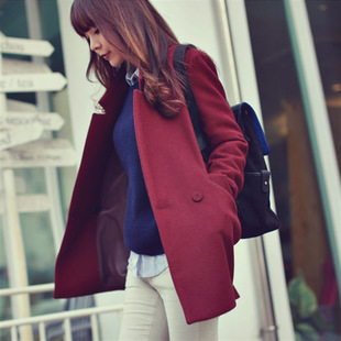 2014秋冬新款女氣質(zhì)純色呢子外套女中長款加厚修身毛呢大衣外套女 /