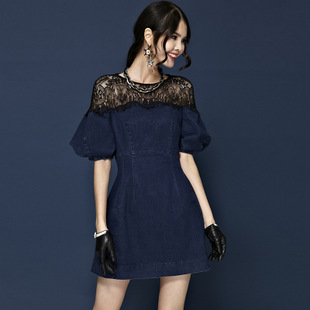 MISS SIXTY原單同款 蕾絲拼牛仔修身歐洲站女裝連衣裙 MPT0845 /