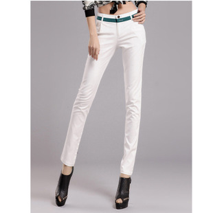 2014白色新款高端女裝休閑鉛筆小腳褲子韓版拼接OL修身九分褲 /