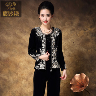 宸妙艷中老年女裝 秋裝外套長袖中年媽媽裝短薄外套金絲絨上衣 /