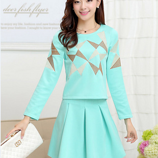 2014秋冬新款女裝小香風(fēng)名媛氣質(zhì)休閑套裝 大碼修身太空棉繡花裙 /