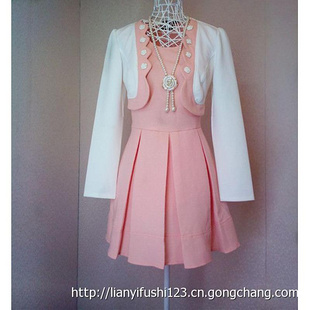 漣依靚麗女裝2014秋款連衣裙兩件套時尚長袖外套修身公主短袖連衣裙套裝 /