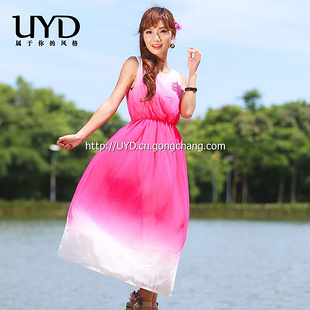 簡(jiǎn)介:長(zhǎng)裙清新氣質(zhì)雪紡連衣裙2014夏新品夢(mèng)幻漸變色圓領(lǐng)無袖飄逸 仙 商品信息 品名:UYD——2014夏新品夢(mèng)幻天絲連衣裙 貨號(hào):UYD002 原價(jià):698元 顏色:夢(mèng)幻紫色、夢(mèng)幻藍(lán)色、夢(mèng)幻淡玫紅 面料:天絲混雪紡100% 里料:聚酯纖維100% 漸變色36層高境界純色夢(mèng)幻!由中往上下逐漸散發(fā)出爍人夢(mèng)幻仙女,如沉浸童話中的彩虹橋讓人沉醉其中。裙舞飛揚(yáng)猶如七彩音符般躍動(dòng),輕薄的高端雪紡面料營(yíng)造出輕盈感通透感,讓人飄飄然沐浴在這夢(mèng)幻彩虹橋中漫步。若隱若現(xiàn)色彩點(diǎn)綴其間,給人爛漫夢(mèng)幻又高貴的感覺,女神范,富有夢(mèng)幻天仙純色漸變?nèi)缏祜w揚(yáng)般的美感,氣勢(shì)與唯美并存。漫瀾夢(mèng)幻,仙氣十足36道高境界印色天絲雪紡+仿真絲里襯+背部小百褶時(shí)尚韻味設(shè)計(jì)
