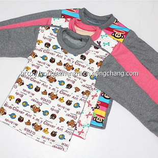 簡介:本廠大量供應3-12兒童保暖上衣、褲子(均為單件)庫存面料制作,雜色雜款混裝質量過硬價格低廉兒童保暖上衣有兩種1.純色:前面一片是全部是純色或者是半個畫皮半個純色拼接的。2.畫片:前面的一片全部是帶圖案的或者各種花型的?!久Q】:秋冬新款 兒童不倒絨保暖上衣【顏色】:多種顏色隨機發(fā)貨【包裝】:十件一捆 散裝【成分】:表100%棉 里 不倒絨【簡介】:此款即每件衣服前片都是不同的花片,各種花形,由于是外貿(mào)余料加工,每批顏色各有不同,面料相同,經(jīng)濟實惠。不倒絨保暖內衣,非常適合秋冬打底衣或者當外套穿表料是棉的,里面是不倒絨,不倒絨的毛非常細膩,觸感很柔滑,手感很好,保暖效果十分好,穿在身上會感覺非常舒服?!境煞荨浚罕砹鲜敲薜?,里面是不倒絨,不倒絨的毛非常細膩,觸感很柔滑,手感很好。【尺寸】:因為買的都是外貿(mào)訂單余料,所以都是根據(jù)布料裁剪的,就是說同是小號的一捆里面有大點的也有小點的。一般都是適合3~7歲左右的穿,大童適合8~11歲穿,不挑色。隨機發(fā)貨!介意者甚拍!注:由于是布頭散料而制,布料裁剪會導致同是小號的一捆里面有大點的也有小點的,也有可能有的布料厚點有的布料薄點,有的毛長點有的毛短點,但是都不錯的。隨機發(fā)貨哈!顏色很雜,是雜款,圖片沒有拍全呢,每次的顏色都會不一樣,有些帶卡通,有些顏色亮一點,有些暗點,主要有紅色粉色 紫色 淺灰色 深灰色 黑色藏藍色等顏色,但是花色是隨機搭配發(fā)貨,在發(fā)貨的時候會盡量的搭配,大家銷的好,我們才有銷路。不過這個一般散著賣會比較好賣,讓客人隨便挑,地攤甩賣什么的非常熱賣。一天上百件不是問題呢!