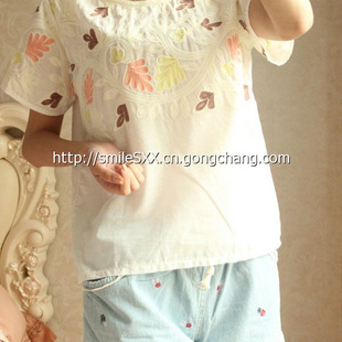 簡介:很清新的一款T恤,精致的樹葉刺繡,寬松的版型,胖美眉也適合的呢 稀飯!~
