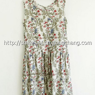 簡介:碎花連衣裙,采用麻混紡的材質(zhì),良好的透氣性,夏季親膚舒適。簡單的圓領套頭穿著,后領口一??鄞羁郏?方便穿脫,無袖設計,更加的清爽涼快呢,抽繩系帶腰, 更加的凸顯身材