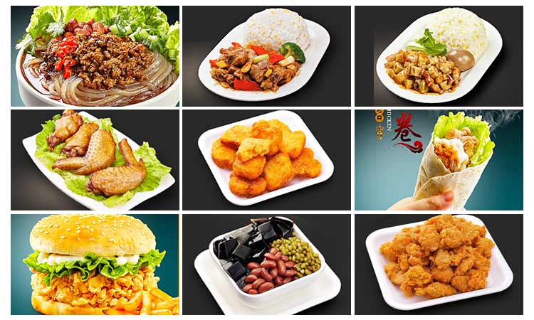 缽缽雞 酸辣粉 芒果燒仙草 手抓餅 油炸肉串 原味大雞排 香辣雞腿堡 原味雞蛋仔 培根芝士披薩 壽司