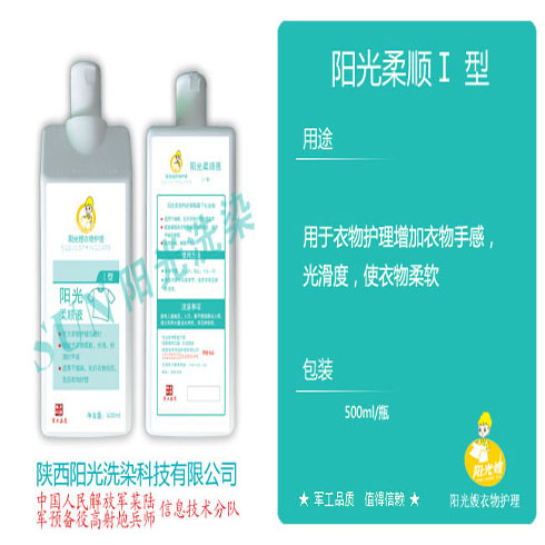 簡(jiǎn)介:陽(yáng)光嫂衣物護(hù)理-陽(yáng)光柔順液系列陽(yáng)光柔順液用于衣物護(hù)理增加衣物手感,光滑度,使衣物柔軟,可使你的服裝不變形不縮水,顏色鮮艷靚麗,皮草染色自然柔順,色澤光亮。陽(yáng)光科技是我國(guó)唯一一家與高校合作——陜西科技大學(xué) 的技術(shù)、產(chǎn)品研發(fā)單位,唯一擁有衣物護(hù)理全部配套產(chǎn)品,獨(dú)享自主知識(shí)產(chǎn)權(quán)。做到了不僅使顧客的衣物“衣”舊如新,而且對(duì)于21世紀(jì)一個(gè)追求環(huán)保型社會(huì)來(lái)說(shuō),健康也成為產(chǎn)品具有的要求之一。陽(yáng)光嫂衣物護(hù)理產(chǎn)品根據(jù)不同的需求選用不同的系列