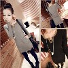 露飛服裝秋冬新款韓版時(shí)尚大碼女裝-撞色拼接收腰顯瘦長袖連衣裙 /