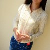 Tulander 1634 娃娃領(lǐng)蕾絲門襟純棉花朵內(nèi)襯蕾絲襯衣 長袖襯衫 /