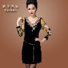 歐美品牌女裝2013秋冬季新款金絲絨連衣裙重工繡金絲絨花連衣裙子 /