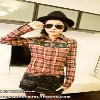2013新款圣誕雪花針織拼接磨毛棉加厚翻領長袖格子襯衫 /