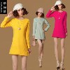 【伙拼】2013秋冬裝新款韓版女裝批發(fā)名媛修身長袖毛呢連衣裙代理 /